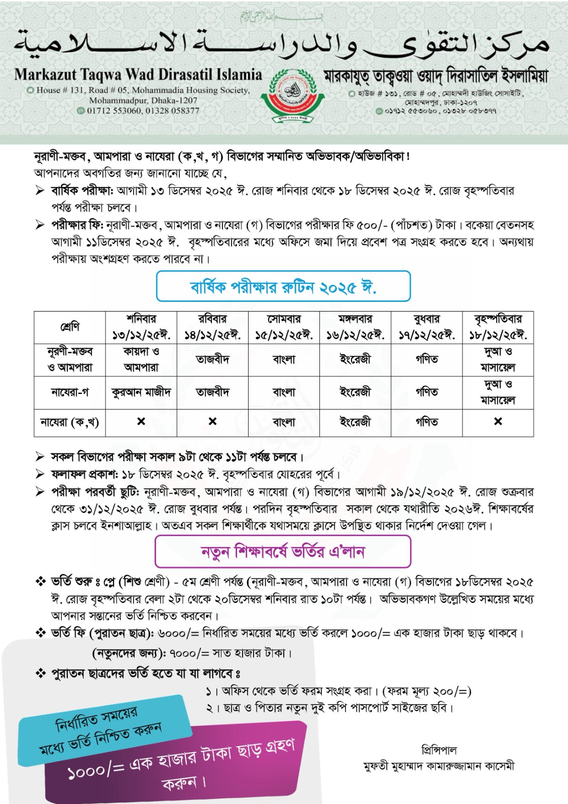 মারকাযুত তাকওয়া ওয়াদ দিরাসাতিল ইসলামিয়া: জামেয়ার সংবাদ